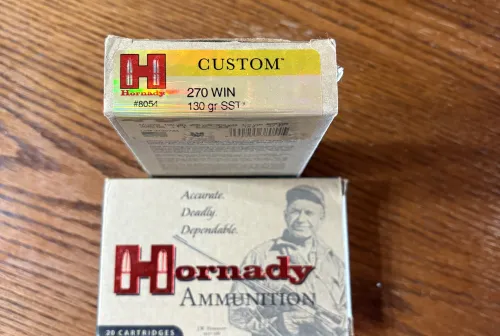 Swap / Trade 2 boxes of Hornady Custom 270 Win Jan 4, 2026 - 12:17 PM traxxas13 2 Boxes of Hornady Custom 270 Win 130g SST’s. Both same lot number.