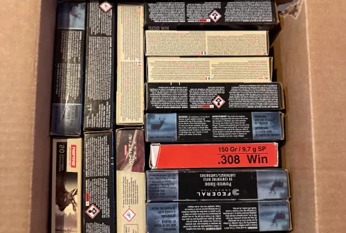 70.00 308 Once-Fired Brass – 300 Mixed Cases (Norma, Federal Gold Match, etc. Oct 18, 2025 - 2:56 PM Jackman Selling 308 Winchester once-fired brass, boxed (10 boxes of 20).