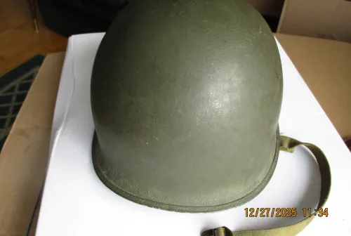500.00 WW2 M1 shell with 1953 liner Dec 30, 2025 - 6:09 AM 67pontiac Liner is Korean war , helmet is ww2 front seam fixed bail .