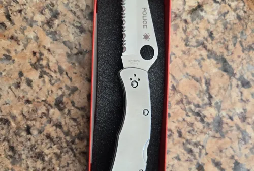180.00 Spyderco Police Knife Jan 31, 2026 - 11:31 AM Talon23 Box is a little scratched but I have never used this knife.