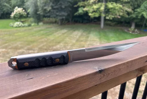 395.00 Koenscraft Sanmai and Carbon fixed blade Aug 26, 2025 - 9:40 AM deliverer Beautiful 13” OAL fixed blade knife by Koenscraft.