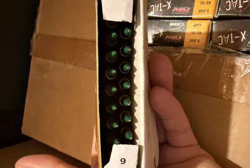 650.00 Pmc 556 green tip 62gr case of 1000 rounds Nov 30, 2025 - 5:56 AM bacona 1000 rounds pmc 556 62gr green top 650$ GTA meetup Pal required