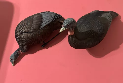 60.00 Flextone hen full body decoys Oct 5, 2025 - 6:38 PM CoffeeJunkii Flextone upright hen & Flextone feeding hen turkey decoys