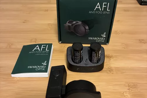 400.00 (Price drop to $400) Swarovski Anti Fog Lens (AFL) system Sep 3, 2025 - 12:35 PM Tyson S. Swarovski AFL (Anti Fog Lens) ocular device with battery ($829.00 retail).