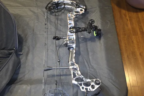 600.00 Mathews triax Dec 13, 2025 - 2:29 PM Glenn Poirier 65 lb 28in right hand mathews triax in lost camo $600 bare or $900 with QAD HDX and black gold si