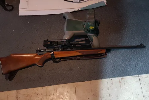 SOLD 350.00 Sporterized Enfield No.4 MK1 sale pennding Mar 10, 2026 - 7:48 AM JClements 1944 Sporterized Enfield No.4 MK1 by Churchill gunmakers