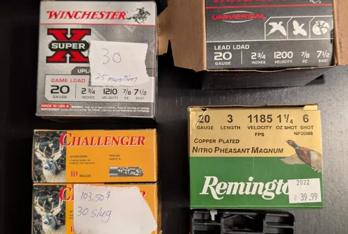296.50 20 Gauge/Calibre munitions diverses Nov 6, 2025 - 10:22 PM ArmesQc Je n'ai plus de fusil de calibre 20 donc je vends les munitions.