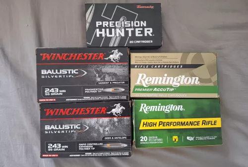 200.00 lot 243 win Aug 16, 2025 - 11:03 AM Gulum-Ei Lot de 243 à Québec. - 20× remington premier accutip-v boat tail 75gr 50$