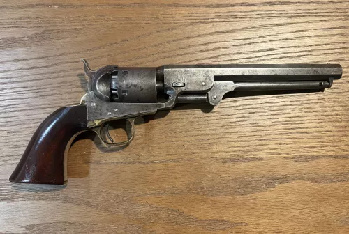 3500.00 Antique 1851 Colt Navy Percussion Revolver Oct 21, 2025 - 3:37 AM KRB81 Antique status 1851 Colt Navy percussion revolver in .36 caliber with 7-1/2” barrel.