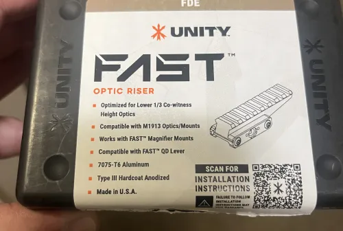 SOLD 120.00 Unity Tactical, FAST Optic Riser, FDE with quick release Dec 11, 2025 - 9:13 PM A.crook Unity Tactical, FASTOptic Riser, Flat Dark Earth with FAST QD lever. In brand new condition.