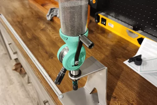 50.00 Powder measure stand Nov 11, 2025 - 6:57 PM bulletbox Aluminum powder measure stand. 1/4 inch heavy duty construction, 7" total height.
