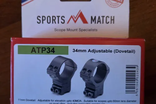 150.00 Sports Match 34mm rings for 11mm dovetail Feb 27, 2026 - 5:35 PM DarcyC Have a brand new set of Sports Match 34mm adjustable rings for an 11mm dovetail rail.