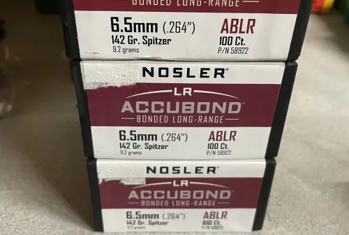 110.00 6.5mm 142 accubond long range Feb 25, 2026 - 6:20 AM lp270win I have 3 full boxes of 100 Accubond LR in 6.5mm 142 grain bullets for sale.