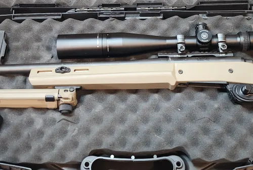1150.00 Remington 700 Tactical w/ Magpul Hunter Jan 16, 2026 - 5:45 PM _ox_ Remington 700 Tactical with FDE Magpul hunter stock and 8 .223 AI mags.