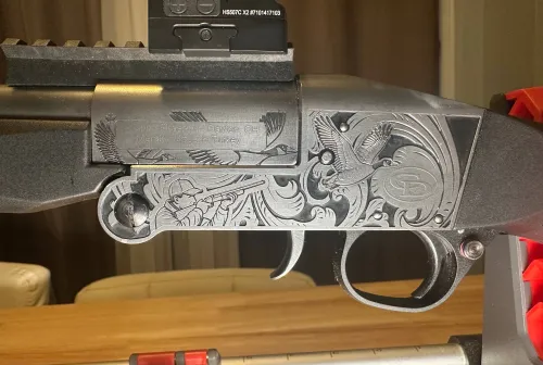 425.00 Custom Engraved 12 Gauge Single Shot – Canada Goose Theme, One of One - Frosty Pine Labs Apr 15, 2026 - 6:02 PM JohnBTC Charles Daly / Chiappa single shot 12 gauge, custom engraved by Frosty Pine Labs.