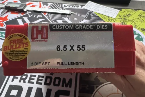 50.00 Hornady Dies for 6.5x55 Jan 11, 2026 - 6:37 PM RCourson Only used a couple of times. Will include the shell holder.