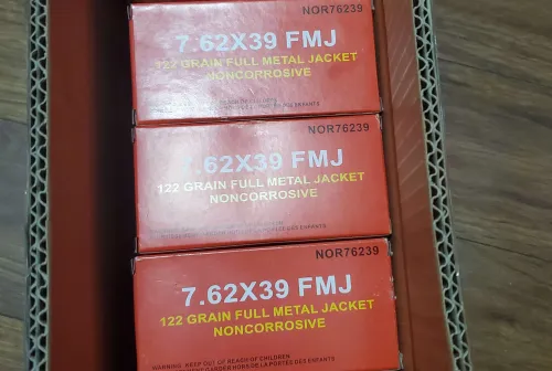 250.00 Norinco 7.62x39 Non Corrosive Fmj 122 grain 500 rounds Dec 12, 2025 - 2:03 PM Rickyy.dox Selling a bulk box of Norinco 7.62x39 FMJ 122 Grain Non corrosive, 500 rounds total.