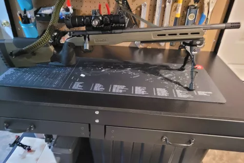 750.00 Savage Arms MARK II FV SR 22 LR Sep 27, 2025 - 11:10 AM Wartox Savage Arms MARK II FV SR 22 LR with MDT Fieldstock, custom trigger (Rifle Basix), compensator in