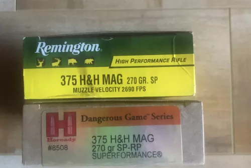140.00 Hornady 375 h&h ammo Nov 19, 2025 - 2:16 PM IanWhalley Hornady 375 h&h 270 gr SP-RP, 15 live rounds plus 5 spent and 20 rounds of Remington spent ro