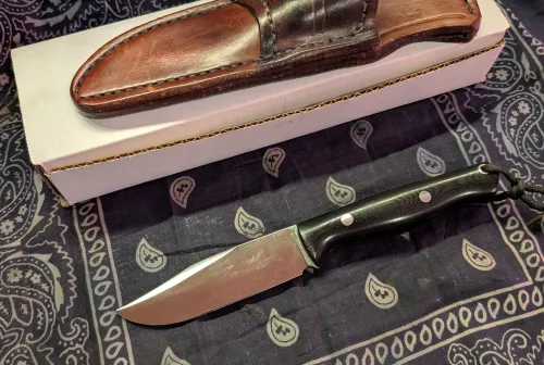 230.00 Bark River bushcrafter CPM 3V Sep 16, 2025 - 6:08 PM Jason C Bark River Bushcrafter CPM 3V. Black Micarta scales.