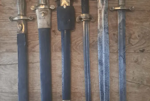 1.00 French short swords 19th Dec 26, 2025 - 12:13 PM dekemist From left to right : P1855 french short sword (unmarked) : 550$