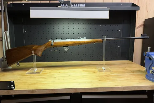 599.00 Mysterious Mauser 8x57 JS Sporter of unknown origin Dec 10, 2025 - 8:34 AM OR4NGE Seems like a commercial Mauser from the 50’s .