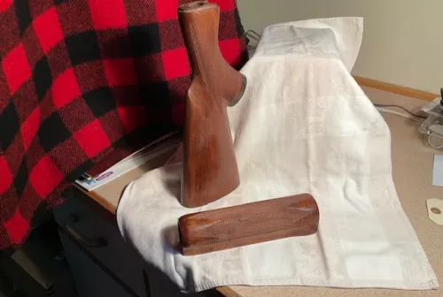 225.00 Remington 870 Walnut Stock Mar 14, 2026 - 3:28 PM rem1894 Fore end and butt stock for your Remington Model 870..in new condition with sharp hand checkering
