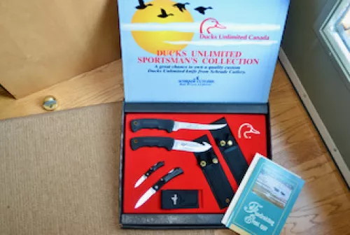 200.00 Ducks Unlimited 4 Knife Set Sep 7, 2025 - 11:41 AM millarman These are Schrade + knives and are close to 30 years old.