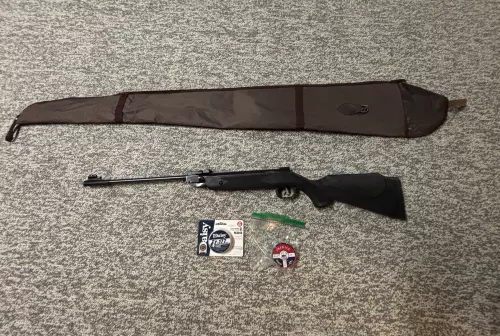 30.00 Break barrel .177 pellet rifle Sep 27, 2025 - 3:48 PM Jspurdz Break action pellet rifle with fibre optic irons comes w/ 2 tins of pellets and a poly fabr
