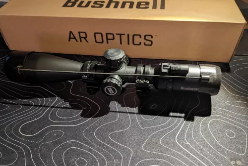 150.00 Bushnell AR Optics 3-12 x 40mm MRAD Sep 23, 2025 - 9:33 PM Grant Howard Bushnell AR Optics 3-12 x 40mm MRAD scope with weaver rings.