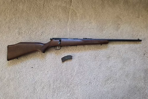 325.00 Savage Mark II .22LR Wood Stock Sep 22, 2025 - 7:09 PM [email protected] Savage Mark II .22 LR in great condition, lightly used. Comes with one metal 10-round magazine.
