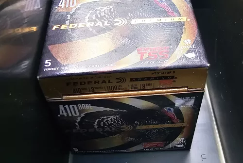 275.00 Federal premium tss .410 Aug 27, 2025 - 12:02 PM quackhead27 10 boxes of federal premium .410 tss 3inch 13/16ounce 8boxes of #9