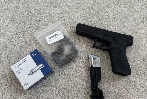 450.00 T4E Glock 17 .43 cal Oct 20, 2025 - 5:23 PM 19Mitaria44 Used only once to plink cans, comes with a Glock hard case that isnt pictured.