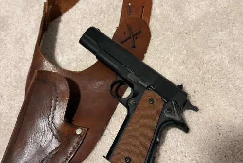 125.00 C02 Colt 1911 with holster Dec 27, 2025 - 4:52 PM 19Mitaria44 Vintage shoulder holster meant for a colt 1911/ colt 45 & a C02 colt pistol.