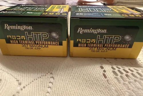 30.00 Remington HTP .357 magnum semi jacketed hollow point Feb 16, 2026 - 6:01 PM Dorubor Remington HTP .357 magnum semi jacketed hollow point 158 grains. Box of 20