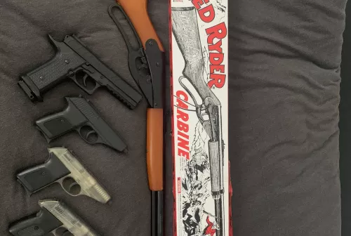 200.00 Red Ryder and spring powered bb pistol collection Oct 26, 2025 - 1:38 PM yishai Daisy red Ryder 650/ Umarex DSX45/ PPK x2 plastic/ PPK black/ 3 spare ppk mags