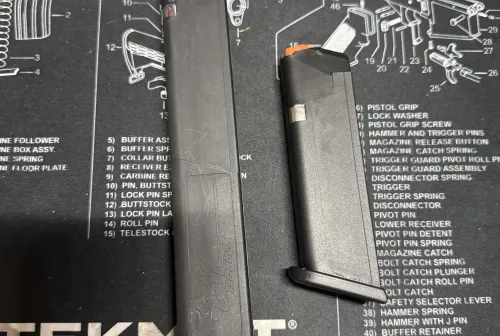 40.00 Brand new Glock OEM & SGM Magazines 40. Cal S&W, one 10/10 and one 10/33 Dec 23, 2025 - 10:35 AM starw24 Selling 2 brand new glock magazines in .40 cal S&W, 1 OEM glock and 1 SGM extended magazines.