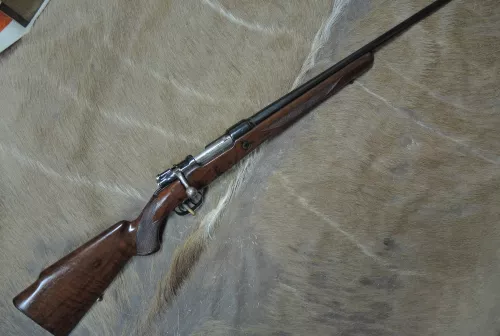 595.00 CUSTOM MAUSER M98 (BYF 44 ACTION) IN 243 Win. Oct 23, 2025 - 1:45 PM weimaden CUSTOM MAUSER rifle made from a Mauser 98 (byf 44) action, bolt is matching, set triggers, custom