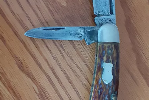 50.00 Reduced! Vintage UTICA Cutlery bone handle pocket knife made in NY Sep 7, 2025 - 6:30 AM Colin Douglas Knife is over 100 years old and is very good condition. Main blade is very sharpe.