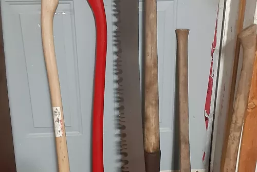 200.00 A vintage collection of woodsmen tools Oct 5, 2025 - 11:48 AM Colin Douglas The collection consists of 3 Blenkhorn axes made in the Blenkhorn factory in Canning NS.