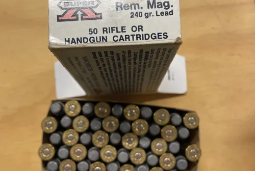 40.00 Winchester 44rem mag 240gr lead Dec 21, 2025 - 5:15 PM _Trooper Super X 44 rem mag. 240 grain lead. 50 rounds. Ship at buyers expense.