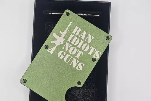 40.00 Ban Idiots Not Guns – Engraved Metal Minimalist RFID Wallet Nov 26, 2025 - 6:29 PM Pew Pew Collector $40 + Shipping Minimalist. Secure. Engineered for Everyday Carry.