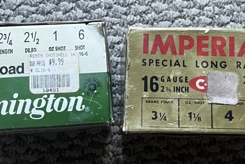 SOLD 30.00 Mixed 16 gauge ammunition Sep 30, 2025 - 3:39 PM MAR-T 25 rounds of Imperial special long range, 1 1/8 oz, 4 shot.