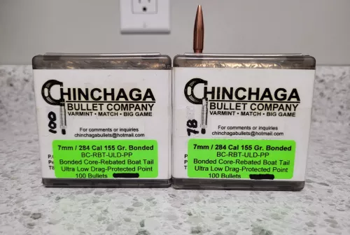 140.00 7mm / .284 bullets Sep 29, 2025 - 8:36 AM K.B.1 For sale 178 ct. 7mm / .284 Chinchaga Match bullets 155gr bonded boat tail.
