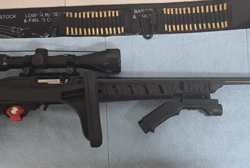 SOLD 650.00 10/22 Folding Semi-Auto Jan 12, 2026 - 11:02 PM farsxp 10/22 Folding Semi-Auto Rimfire Rifle 22 LR including: scope, 2 stocks (one folding ProMag, one o