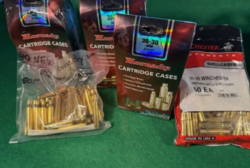 240.00 Win .30 - 30 Brass New Apr 24, 2026 - 8:34 PM gene0B1 New unopened, unused factory Brass: 2- Hornady & 1 bag Winchester brand sealed bags of 50 &nb