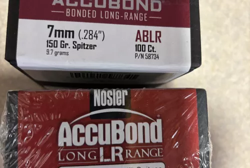 135.00 7mm Nosler Accubond Long Range 150/168 Gr Bullets Oct 2, 2025 - 1:03 PM Colt15 Have one sealed box, 100 count of Nosler Accubond LR 7mm 150 Gr Bullets $135.00.
