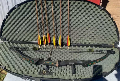 125.00 Compound bow Oct 15, 2025 - 7:13 AM mike1307 Looking to sell compound bow. Comes with case and 6 arrows in really good condition.