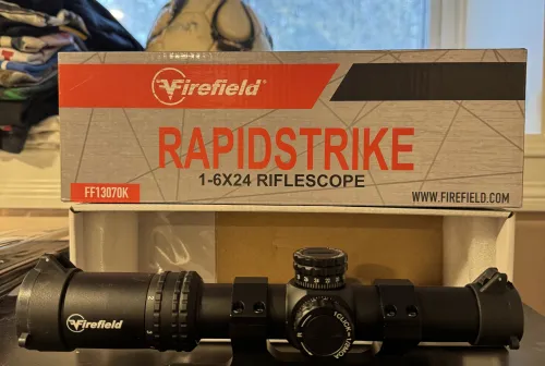 350.00 RAPIDSTRIKE 1-6X24 RIFLESCOPE Jan 11, 2026 - 4:02 PM Shane Sommer Brand-new 1–6×24 variable optic, never mounted or used.