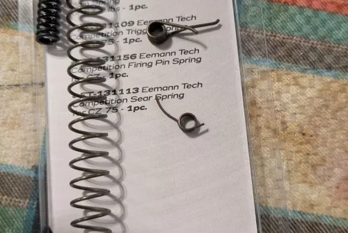 SOLD 45.00 EEMANN TECH Spring Kit for CZ pistols Sep 26, 2025 - 9:04 AM Tom@home@ EEMANN TECH Competition spring Kit for ALL CZ Pistols 11lb r